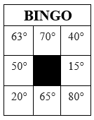 2) O professor apresentará um exercício e os alunos deverão descobrir qual é o ângulo solicitado. Depois, irão verificar se este ângulo está registrado em sua tabelinha e, em caso afirmativo, deverão marcá-lo com um X.