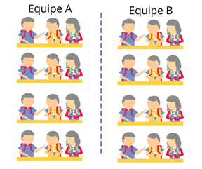 Depois que todos resolveram o problema, circulo pelos grupos para verificar a resolução e a resposta obtida. Cada grupinho que fez corretamente a resolução recebe um ponto e os pontos de cada equipe são computados conforme os acertos dos grupinhos. Por exemplo, se três grupinhos da equipe A e dois grupinhos da equipe B resolveram corretamente a primeira situação-problema apresentada, a equipe A recebe 3 pontos e a equipe B, 2 pontos.