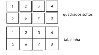 e) Proceder desta forma até que todos os quadrados soltos sejam encaixados na tabelinha.
